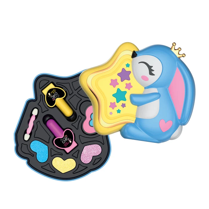 Një set make-up kompakt dhe gjithmonë në modë! Ky set i adhurueshëm make-up është dizajnuar në format të vogël dhe praktik, që mund ta mbash gjithmonë me vete. Paleta e tij me ngjyra të buta dhe moderne është perfekte për të krijuar një pamje plot stil në çdo moment. Të gjitha produktet kozmetike janë testuar dermatologjikisht, për t’i lejuar fëmijët të luajnë dhe të krijojnë me plot siguri.