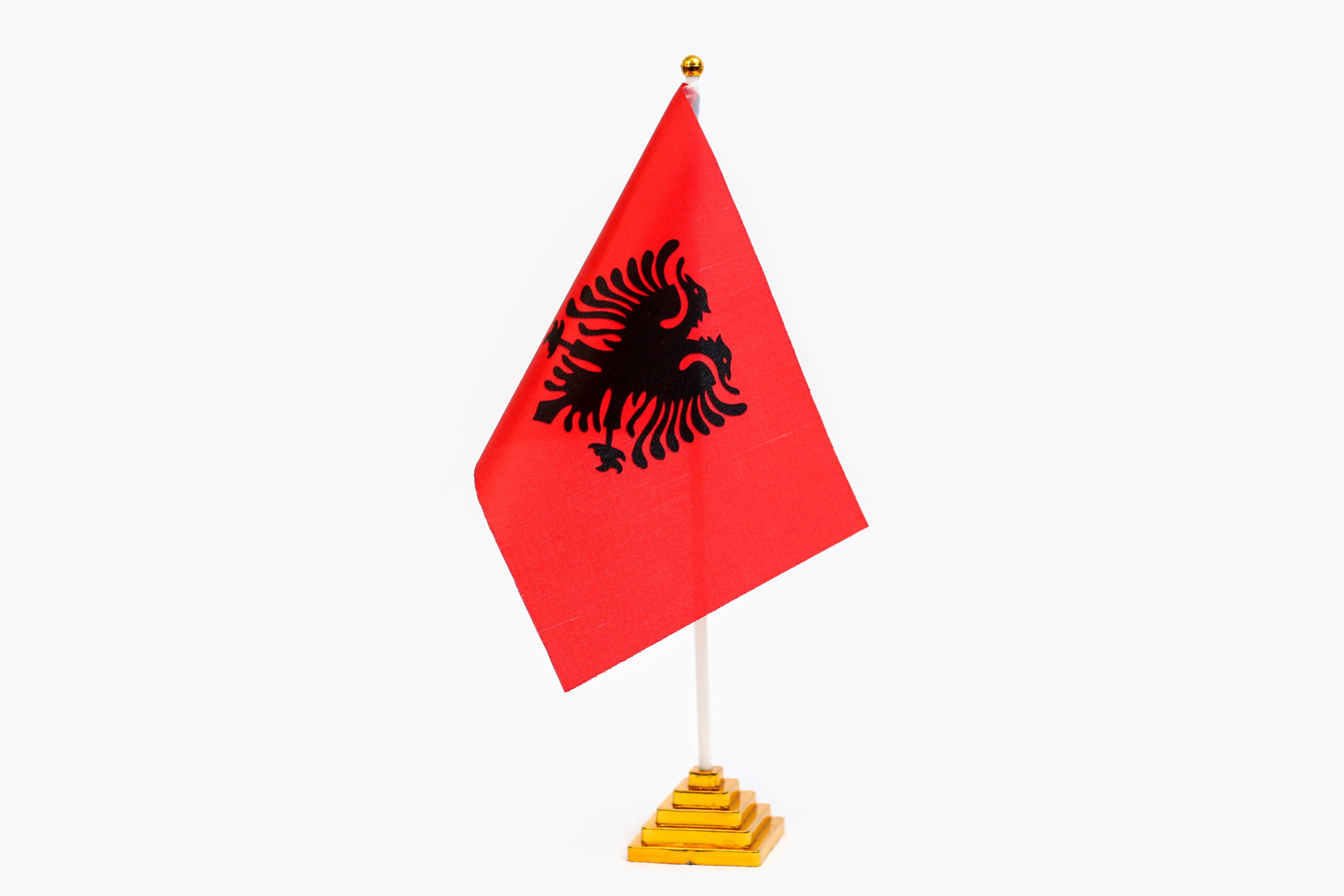 Ky flamur Shqipëria për tavolinë është një mënyrë elegante për të treguar krenarinë kombëtare në shtëpi, zyrë apo ngjarje të veçanta. I projektuar me material të qëndrueshëm, qëndron i vendosur qëndrueshëm mbi tavolinë dhe është ideal për dekor, dhurata apo ekspozime patriotike.