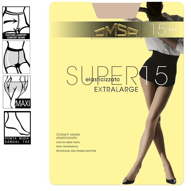Getat e markës prestigjioze OMSA, me trashësi 15 den, ofrojnë një pamje natyrale dhe elegante për përditshmëri apo raste të veçanta. Materiali është i hollë dhe i lehtë, duke dhënë një ndjesi komoditeti gjatë gjithë ditës. ky produkt vjen ne masen S, M, L dhe XL. Madhësa XL eshte me tassellone (pjesë e zgjeruar për rehati maksimale në zonën intime), duke ofruar mbështetje të shtuar dhe përshtatje ideale për trupin. Prodhuar ne itali me cilësi te garantuar dhe stil europian. Përbërja: 92% Poliamid dhe 8% Elastan  eshte nje kombinim qe siguron elasticitet të shkëlqyer dhe përshtatje perfekte me këmbët tuaja. Ideale për: Përdorim të përditshëm, kombinim me funde, fustane apo veshje formale